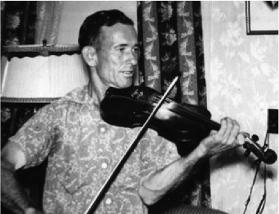 The musical influences on Bill Monroe and others during the 1930s and early 40s were crucial for the development of bluegrass music, however it wasn’t until 1945 that a seminal lineup of band members took place in Monroe’s Bluegrass Boys, a lineup that cast an indelible mark on the music’s future. During WWII, a jazz fiddler from Florida named Chubby Wise heard that Monroe’s great fiddler Howdy Forrester was leaving the band for the service. Wise was accepted into the band on a trial basis and although he was not familiar with playing Monroe’s hillbilly style, he was talented and a fast learner. Together Monroe and Wise worked at creating a whole new role for the fiddle in a string band. Fiddles had traditionally played lead most of the time. Because Monroe wanted to feature trio and quartet singing and his own mandolin playing, Wise developed a rhythmic role for the fiddle taking on a “chop” function when the mandolin dropped its strong back-beats for a solo break. He also learned to back up the vocals with complimentary lines, double-stops and fills.